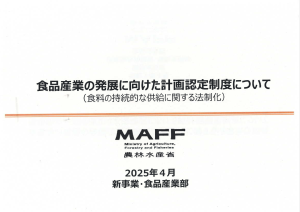 4月には「食品産業の発展に向けた計画認定制度について」 食糧の持続的な供給に関する法制化 と題し、政策発表を行っています。